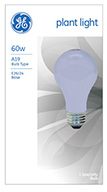 GE, 60A/PL, 60W, 120V, Incandescent Plant Light Bulb, A-Line A-19 Maximum Overall Length 4 -7/16", Medium Base, 630 Lumens, 1000 Hours.